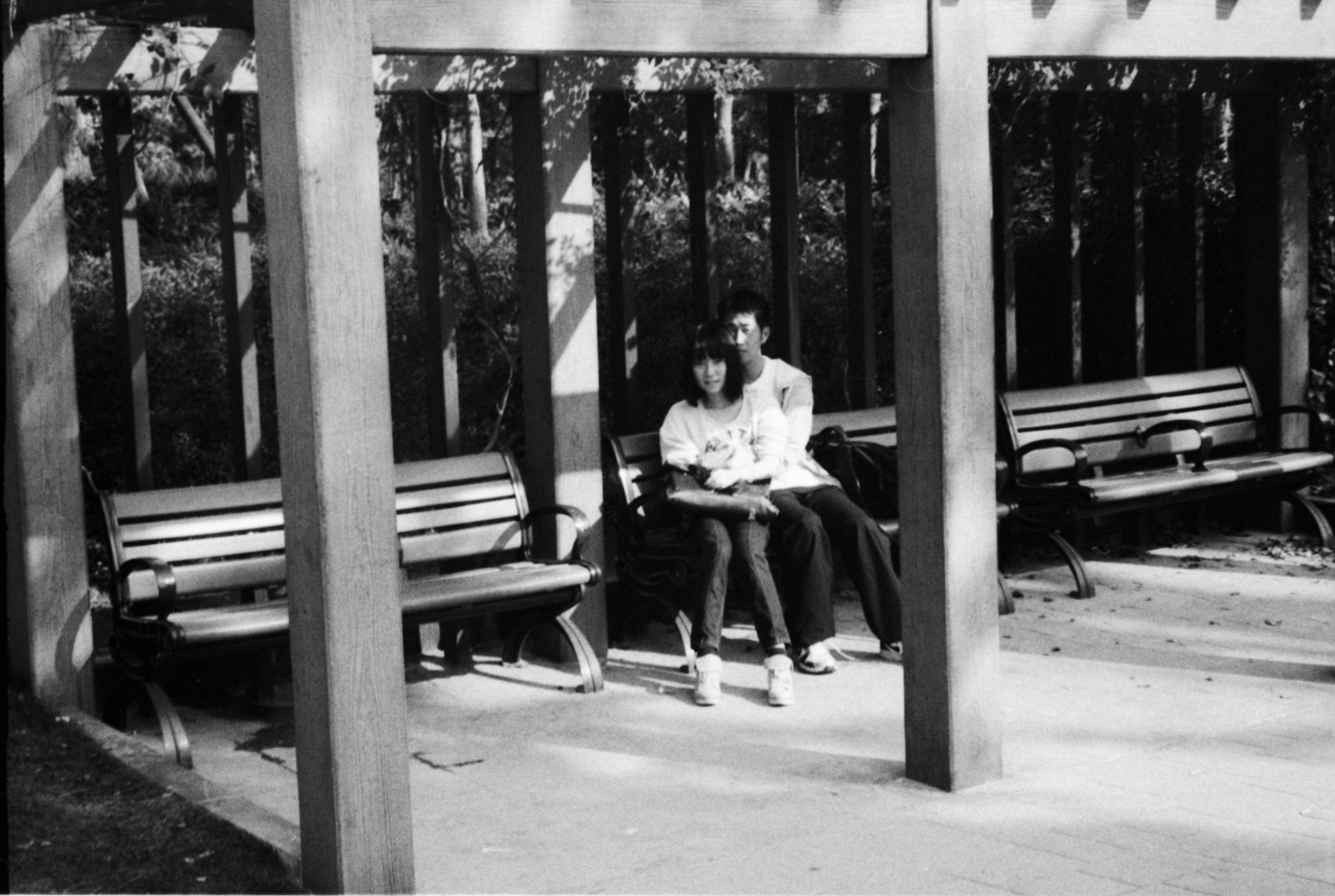 我总是观察着,举起相机,冷不丁地拍上一张。我很羡慕那些正在谈着恋爱的人。他们有人陪,有事干,而我,只能逛公园。