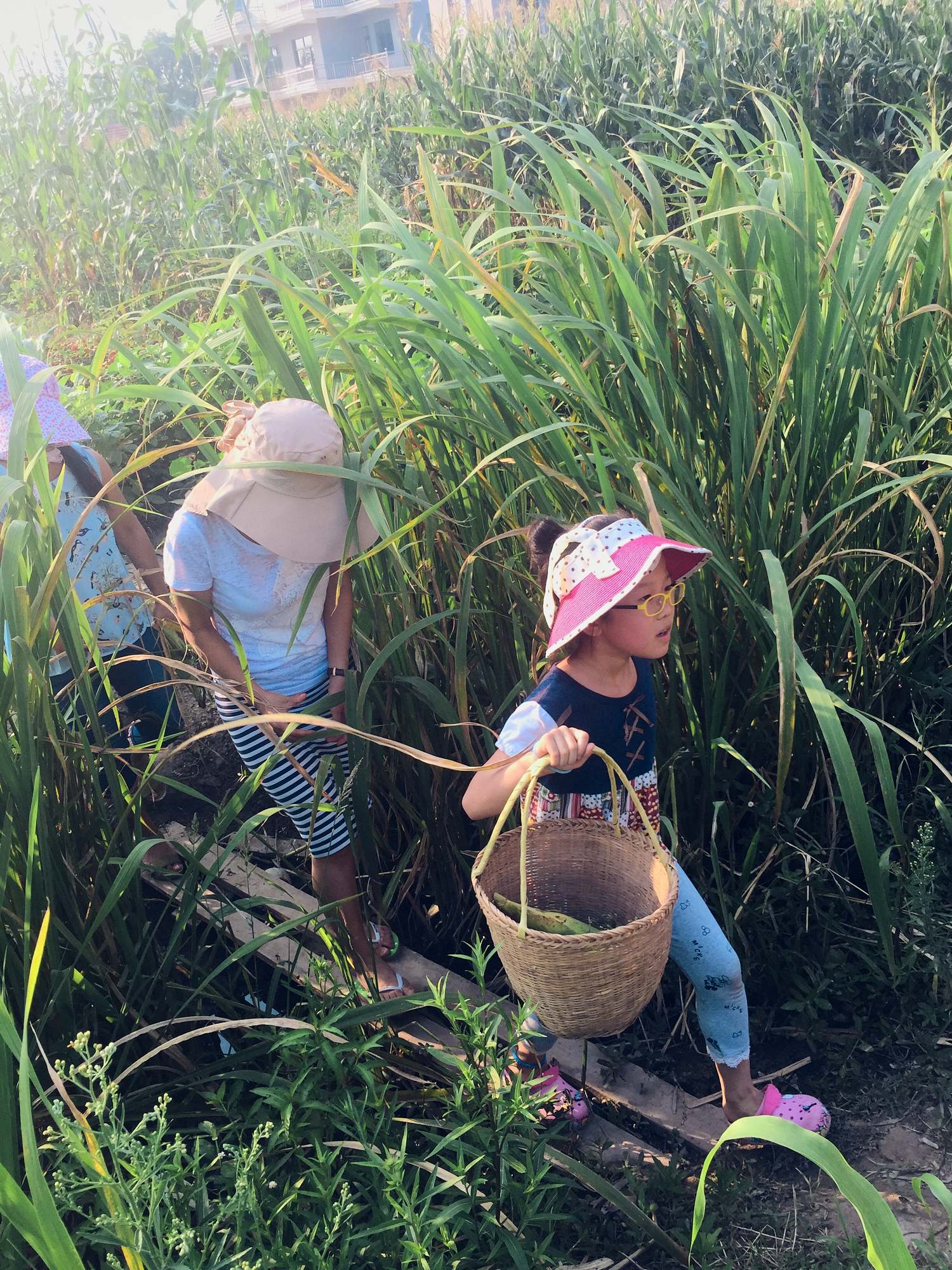 这些参加夏令营的孩子们,大多不知道玉米和西红柿是怎么长大的,也从来没有机会认真地观察向日葵成熟之前的肌理,更不知道土壤的气味。未知,既让人充满好奇,也处处是危险——不知道什么植物会让人过敏;说不定什么时候,从哪就溜出一条蛇或者蜈蚣。对于孩子们来说,挑战才刚刚开始。
